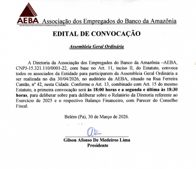 AEBA Banco da Amazônia Reunião de negociação debate temas da categoria Posted on 26/08/2019 Na manhã desta segunda-feira, 26, ocorreu uma reunião entre o banco e as entidades para discutir os problemas da categoria. Entre os assuntos expostos,... Leia mais