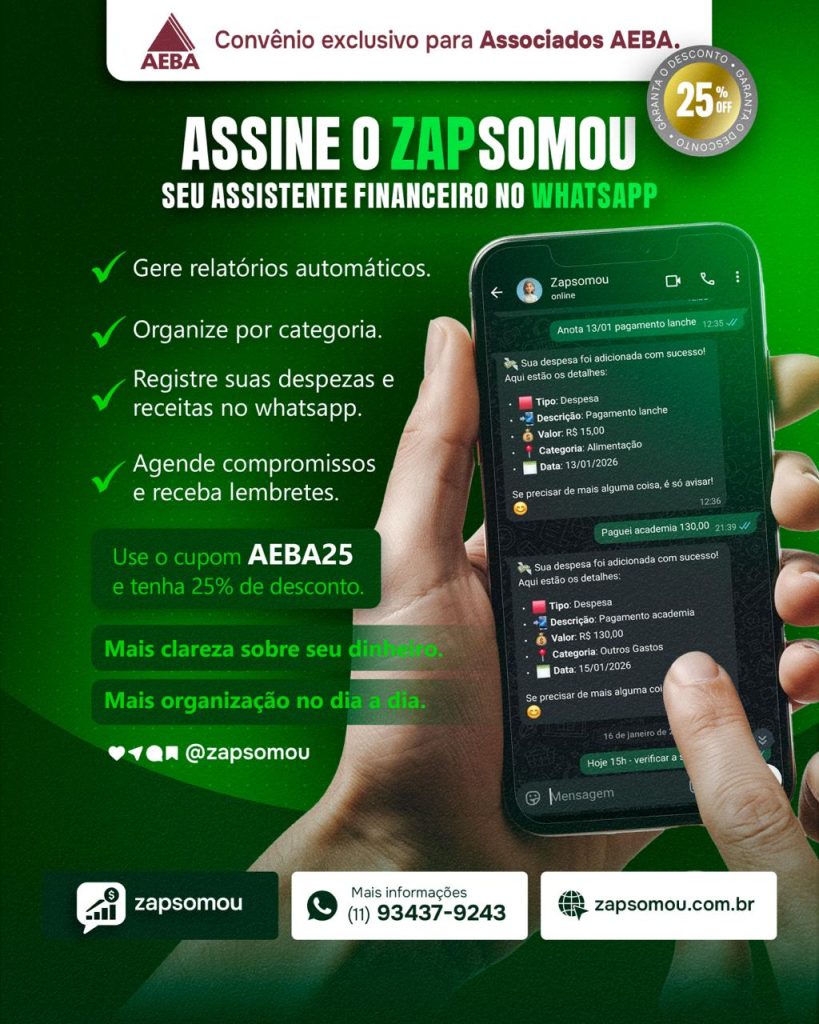 Desconto de 25% na assinatura do aplicativo disponível para associados AEBA