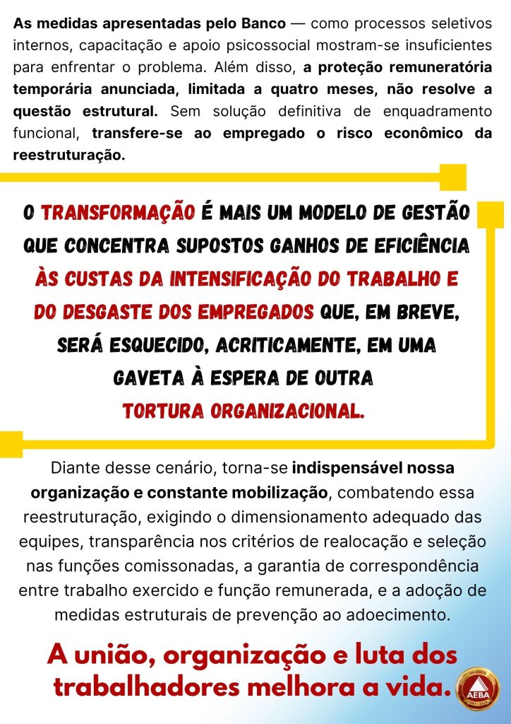 O Transformação é mais um modelo de gestão que concentra supostos ganhos de eficiência às custas da intensificação do trabalho e do desgaste dos empregados que, em breve, será esquecido acriticamente em uma gaveta à espera de outra tortura organizacional.