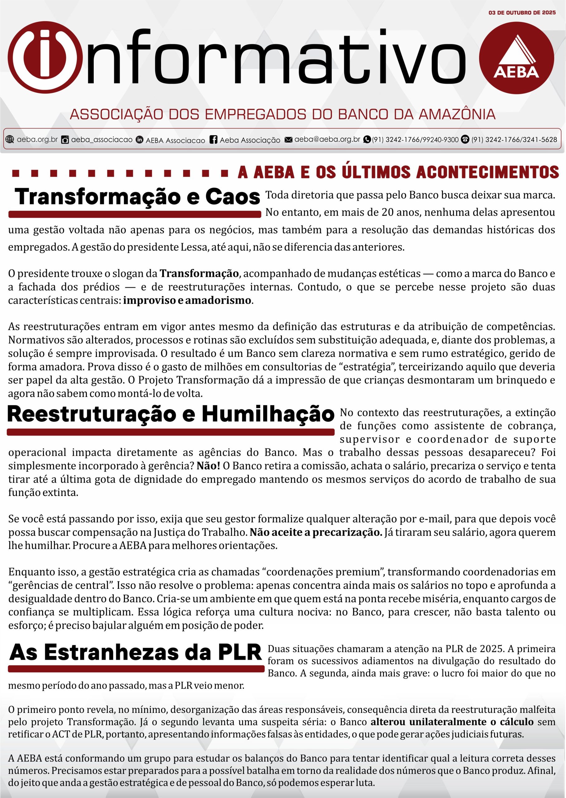 AEBA Bancários Brasil COVID 19 Saúde Bancários: lutar pelas suas vidas e pela população em primeiro lugar! Posted on 06/04/202006/04/2020 Já são vários os casos de colegas bancários sendo vitimados fatalmente pelo Covid-19. Um deles, nosso colega Edgard dos Santos Pereira, que, inclusive, nos... Leia mais
