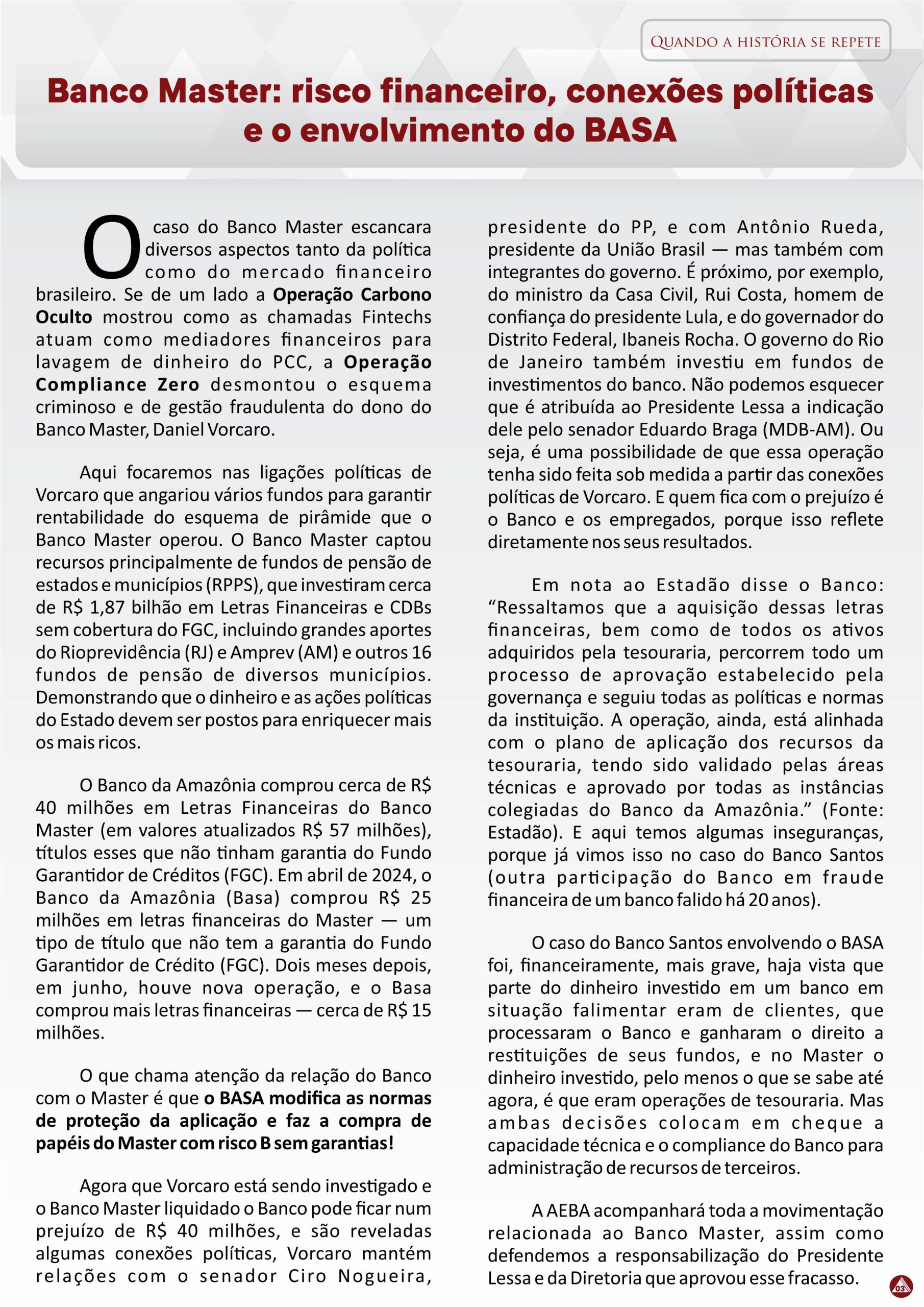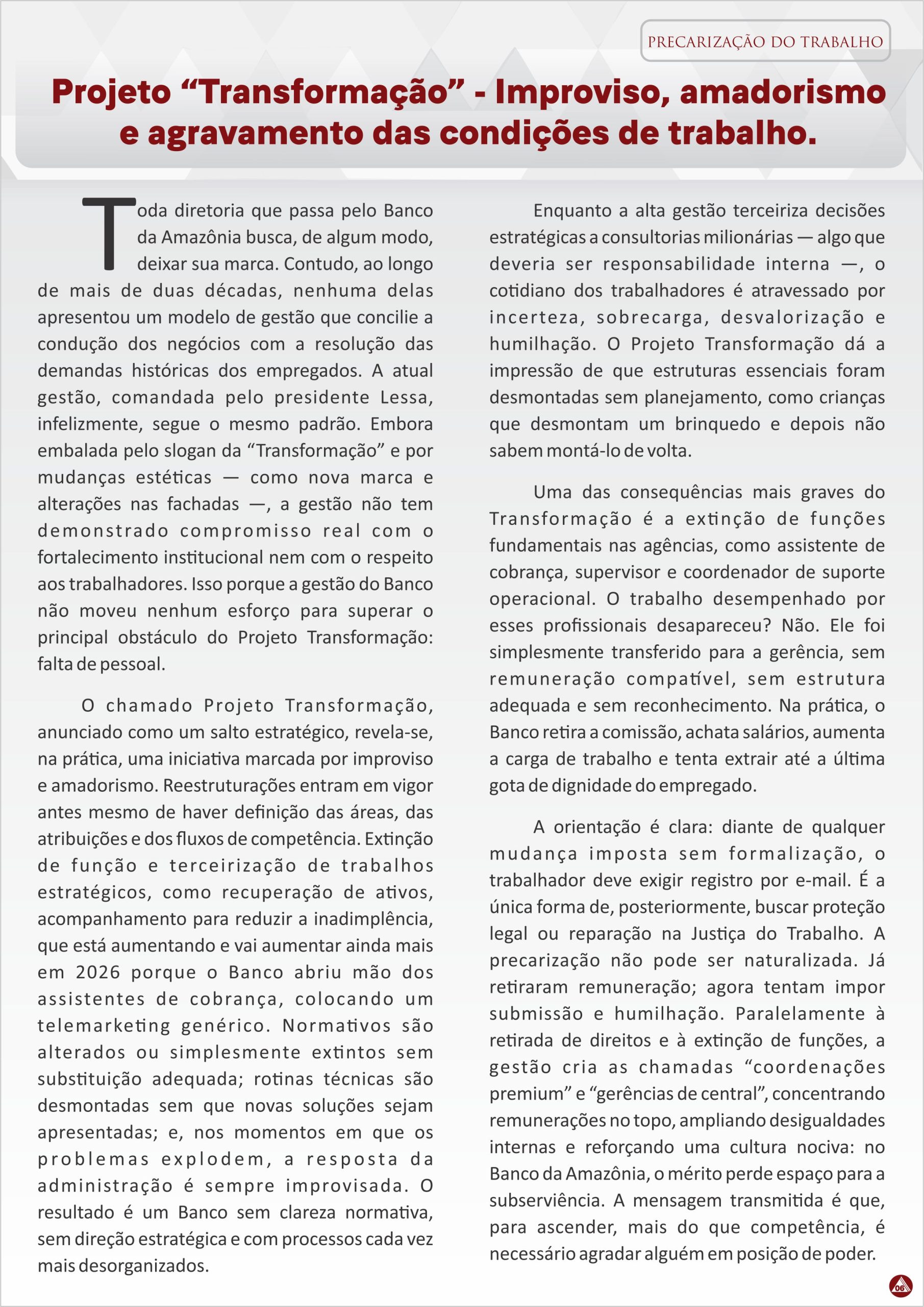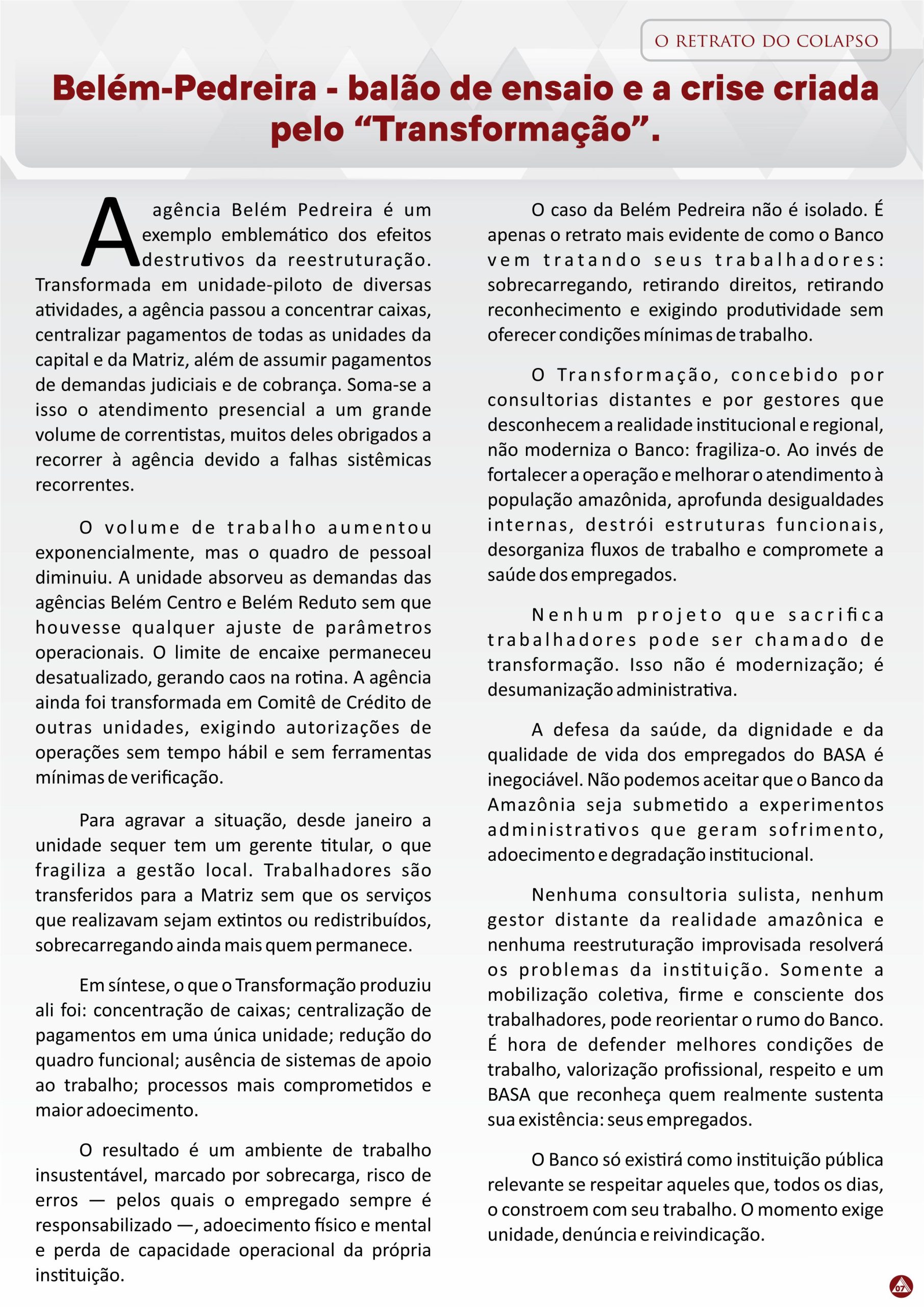 Banco da Amazônia Agência Pedreira agoniza sem condições de trabalho. Posted on 04/10/201204/10/2017 Segundo relatos dos empregados da agência Belém –Pedreira, quatro centrais de ar da agência estão com defeito há quase um ano. Os empregados reclamam... Leia mais