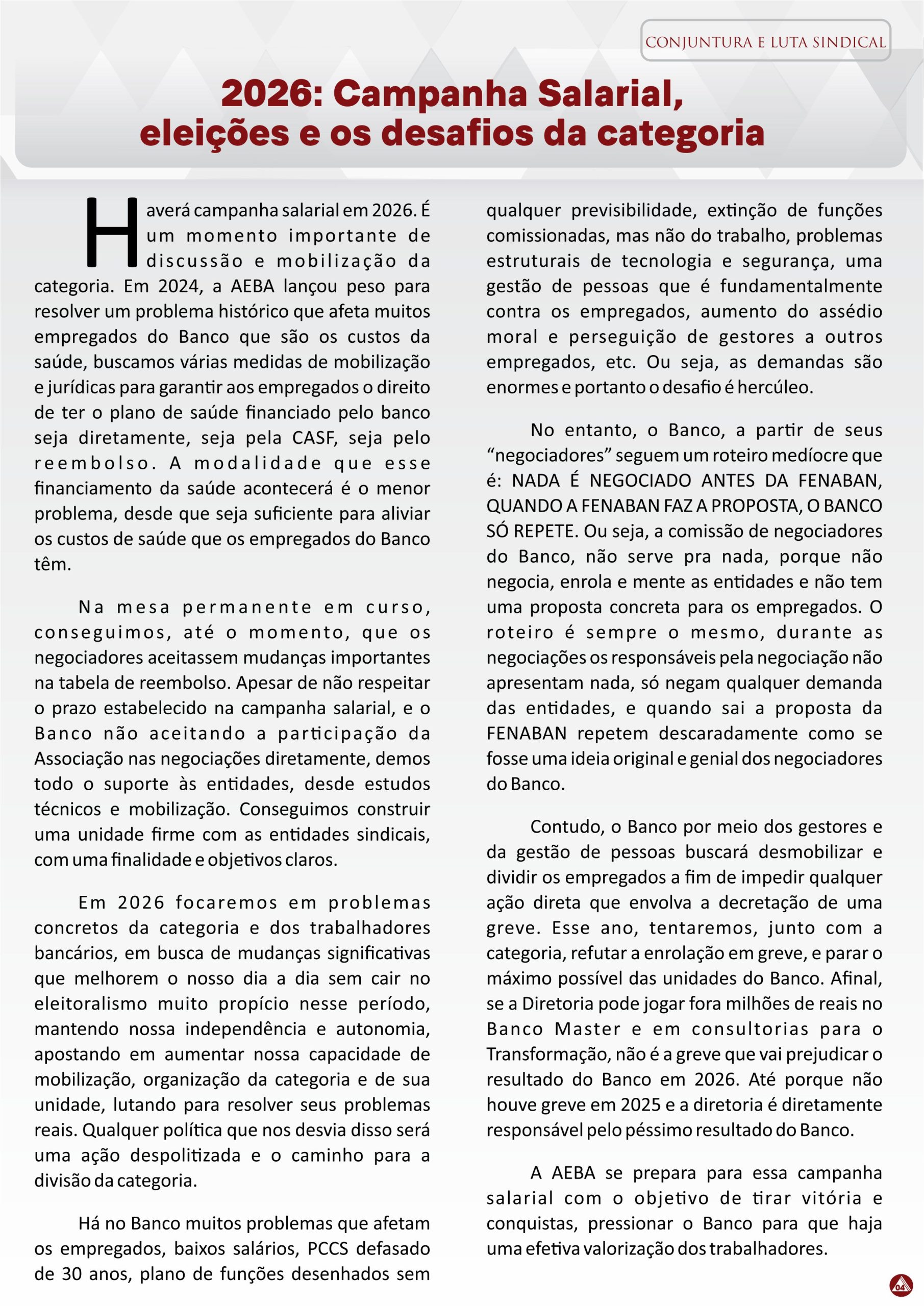 AEBA Prestação de Contas Prestação de Contas – Balancete do mês de abril de 2021 Posted on 20/07/202110/08/2021 A AEBA disponibiliza a prestação de contas do mês de abril de 2021 e coloca-se à disposição para eventuais dúvidas. Clique aqui e confira... Leia mais