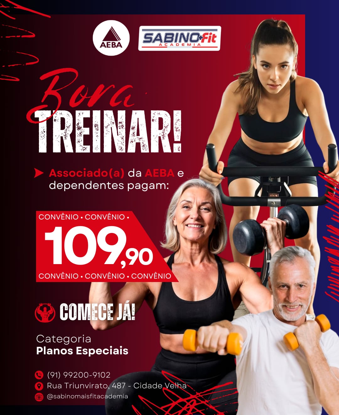 Você e seus dependentes fazem parte dos “Planos Especiais’, onde é possível treinar com estrutura de qualidade, acompanhamento e condições exclusivas pensadas para quem faz parte da nossa associação e, principalmente, com um precinho bem diferenciado dos valores praticados pela academia.