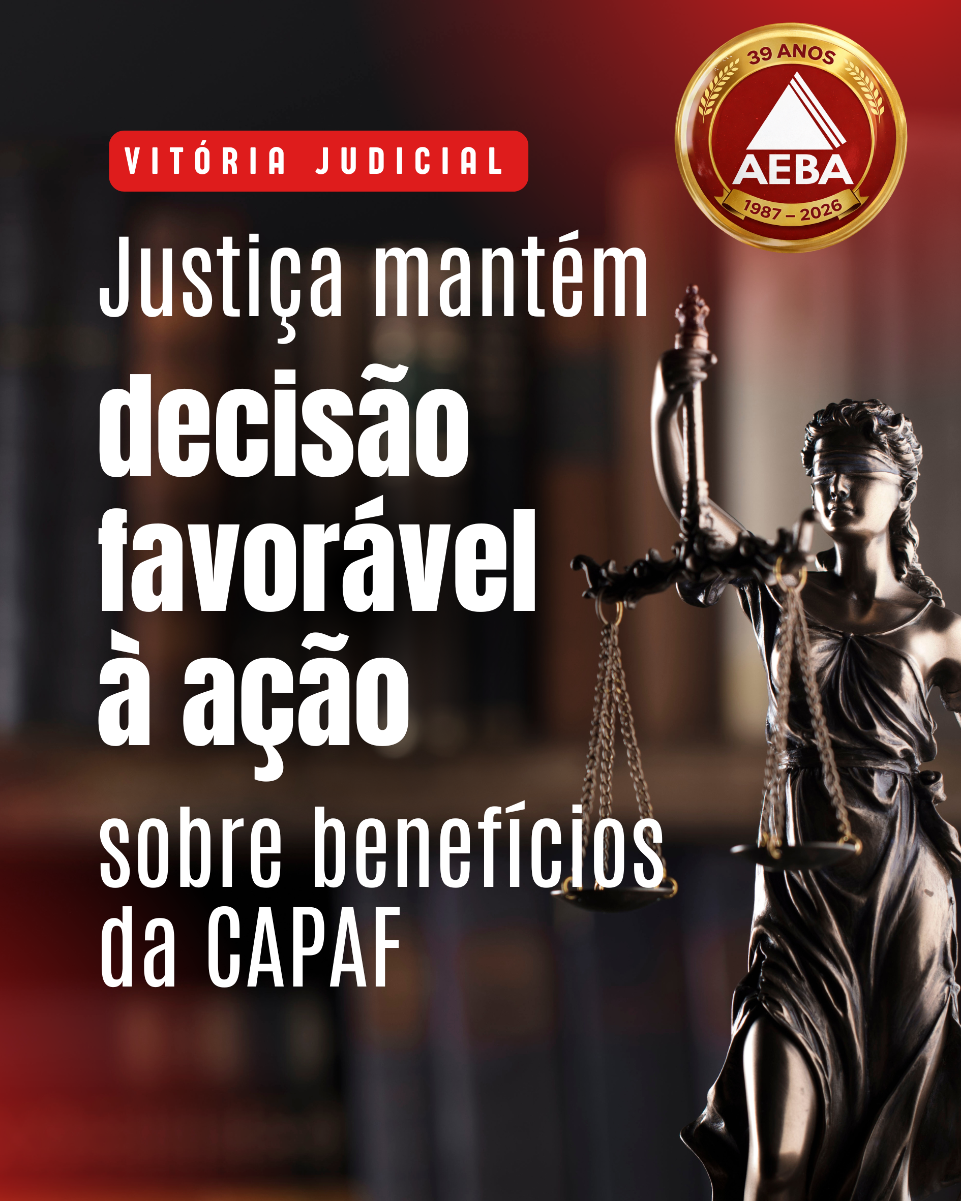 A decisão reforça a segurança jurídica em torno dos benefícios da CAPAF e consolida mais uma vitória da luta coletiva da AEBA e da AABA na defesa dos interesses dos empregados e aposentados do Banco da Amazônia.